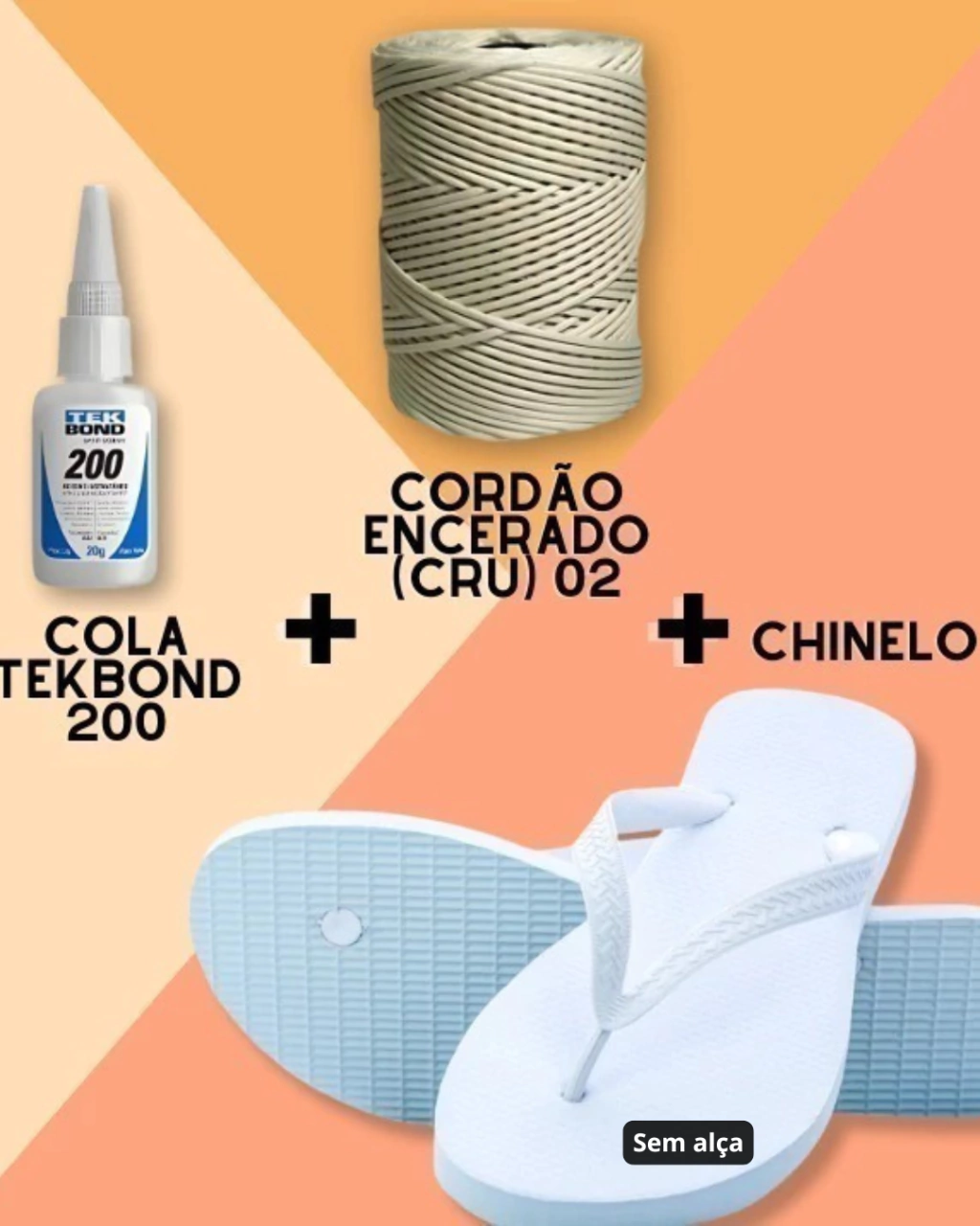 O kit é composto por 1 rolo de cordão encerado e 1 par de chinelos.